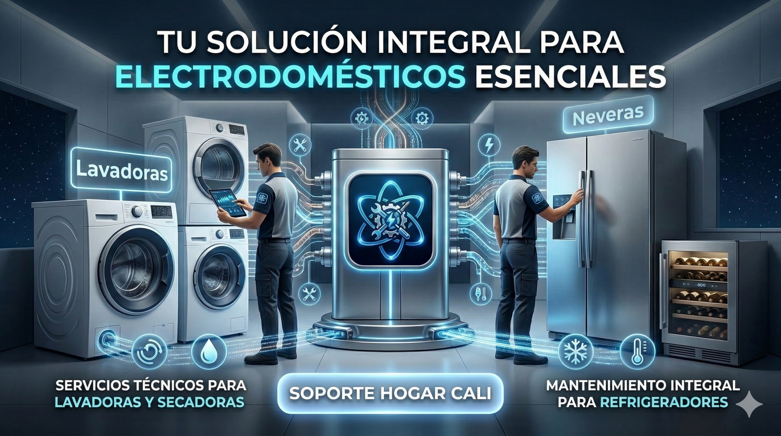 Soluciones integrales para todos sus electrodomésticos con técnicos certificados, repuestos originales y garantía escrita en Cali, Palmira y Jamundí.